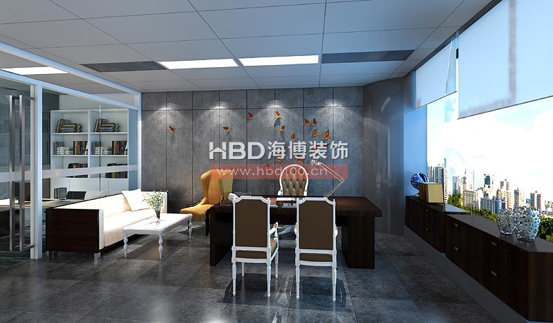 海博裝飾在設(shè)計中融入企業(yè)形象元素,蝴蝶雙飛給整體空間營造出一種清新脫俗的柔性美,辦公區(qū)采用高間隔進(jìn)行功能區(qū)分,而地面統(tǒng)一采用灰色高級地毯,辦公桌椅均使用綠色元素裝點,充分展現(xiàn)出一個信息科技公司辦公室裝修的朝氣、熱情與創(chuàng)新。
