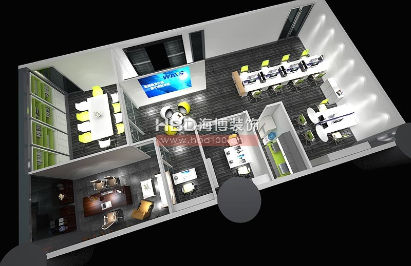 美銀網(wǎng)絡(luò)科技公司辦公室設(shè)計裝修 鳥瞰效果圖