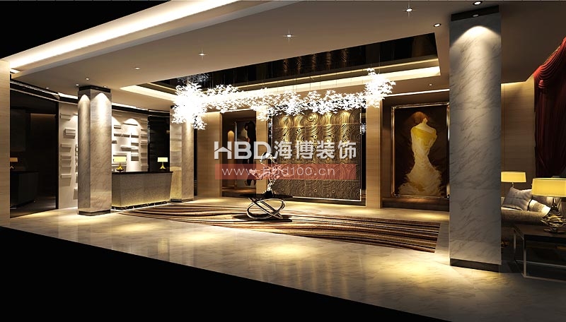 大廳的設(shè)計(jì)強(qiáng)調(diào)線形流動(dòng)的變化,色彩華麗,暗黃色的天花燈槽、閃耀著異樣光芒的水晶燈飾,無(wú)不呈現(xiàn)富麗堂皇的景象。每一處細(xì)節(jié)恰到好處的處理給俱樂(lè)部加分,大型水晶吊燈靜靜地泛著影影綽綽的燈光,朦朧、浪漫之感油然而生,風(fēng)情萬(wàn)種。舒適的座椅、極具創(chuàng)意的燈飾、櫥窗邊的略帶點(diǎn)中式風(fēng)格的雕塑、唯美的水池,整個(gè)俱樂(lè)部溫馨如家,讓到訪者的心情更為愉悅放松!